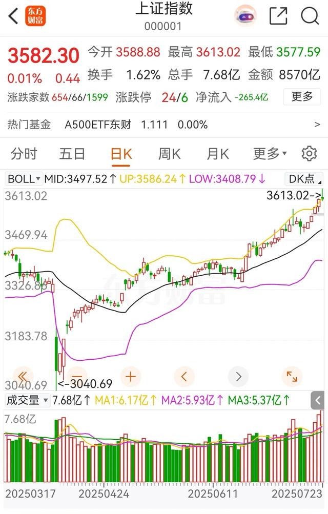 沪指涨0.01%,报3582.3点,深成指跌0.37%,报11059.04点,创业板指跌0.01%,报2310.67点,科创50指数涨0.45%,报1020.86点